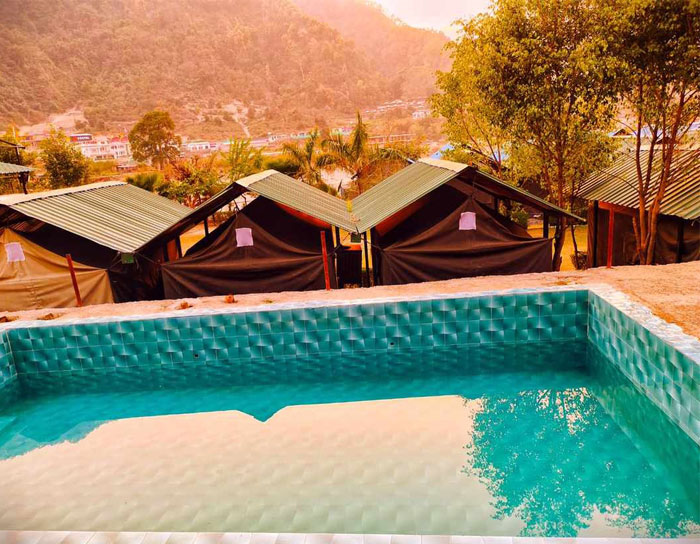 Welcome Drink, All Meals, Bonfire, Evening Snacks, Waterfall Trekking, Stunning River View Location and Rafting* Included In The Package